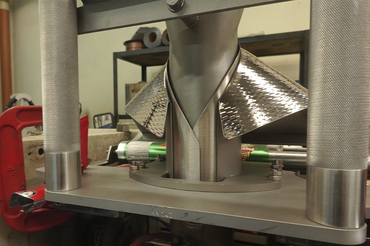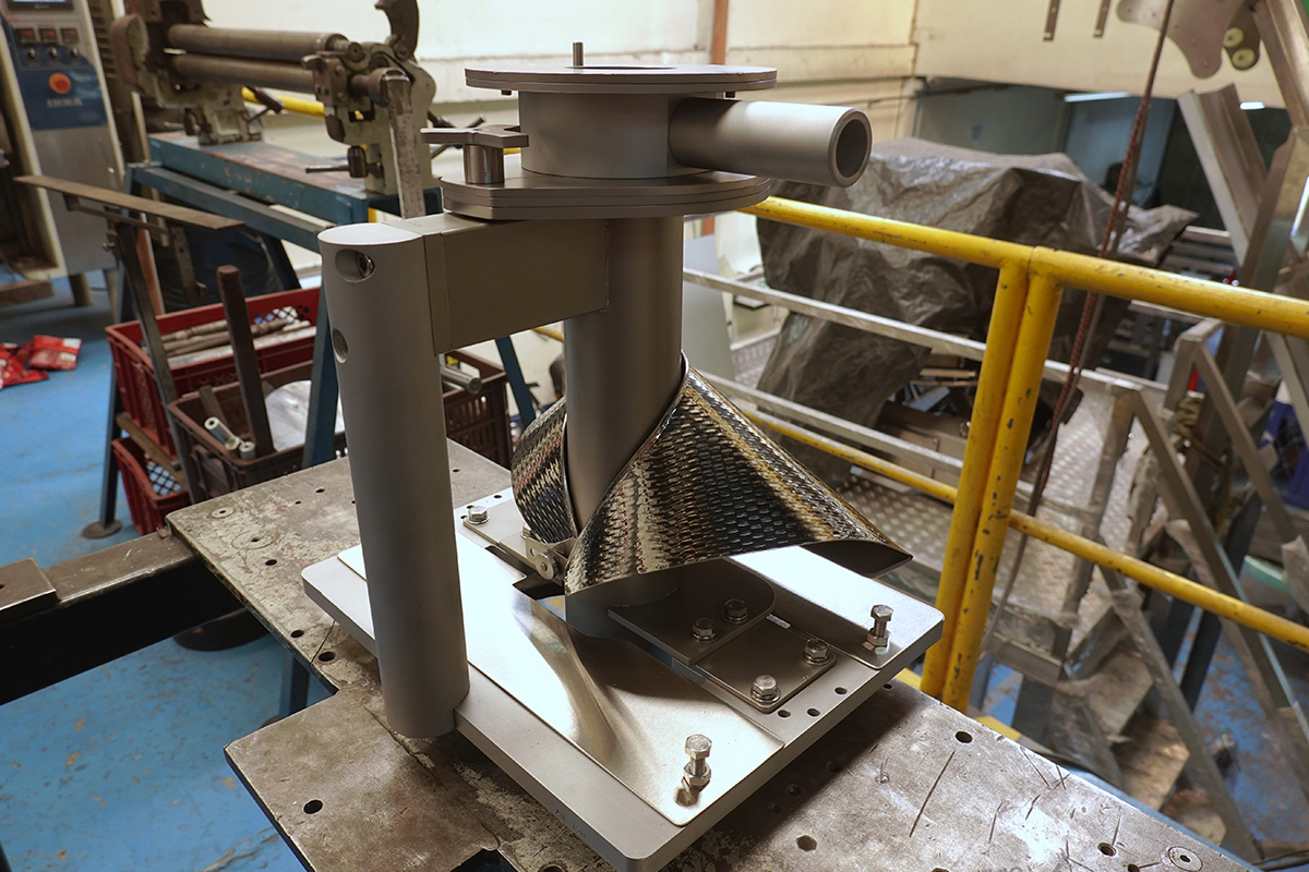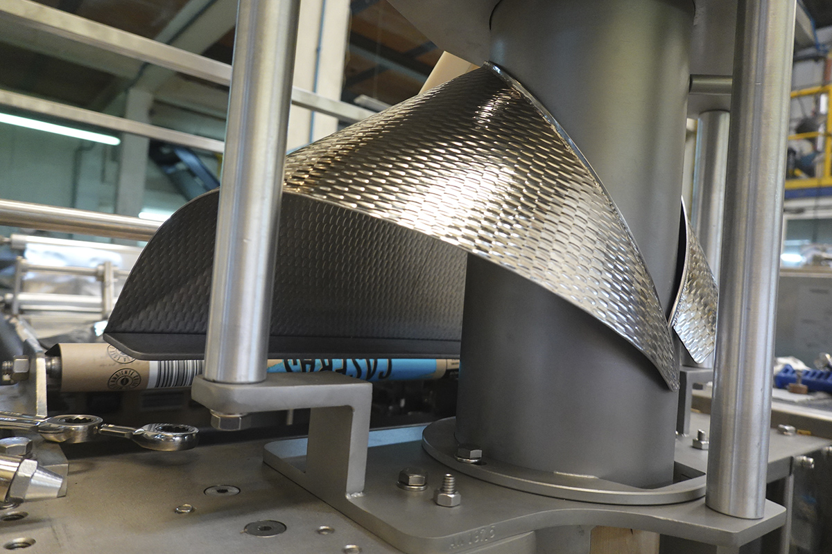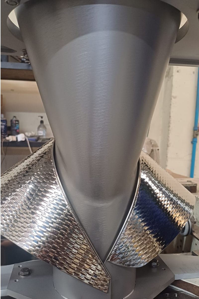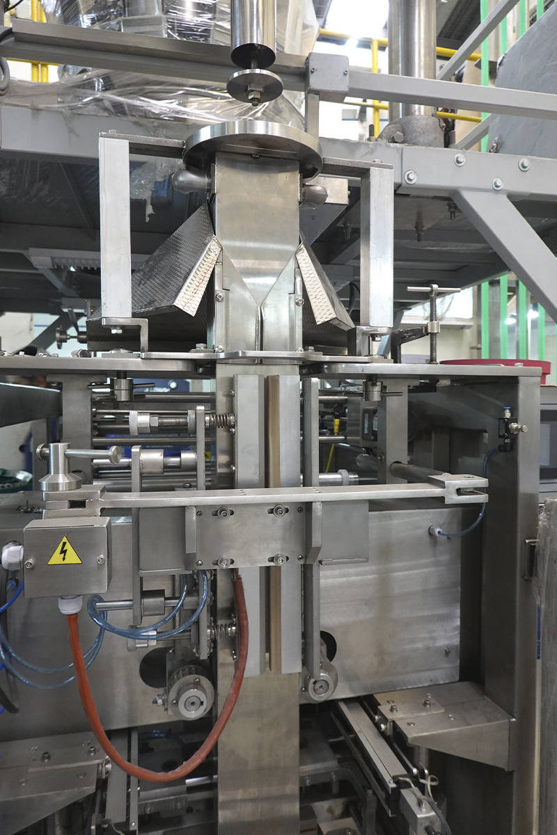 Su función es fundamental: el formador es el encargado de dar forma cilíndrica a la película de empaque, preparándola para que sea llenada con el producto y sellada con precisión.